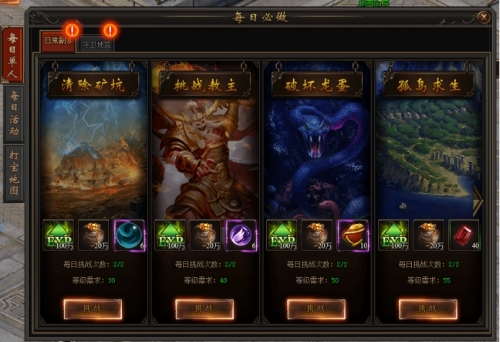 一共有8個副本,會隨著主線任務的進行而依次開啟。每個副本每日可以挑戰2次,難度不高均可輕松搞定。